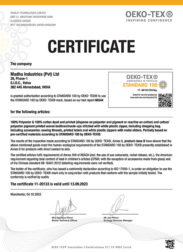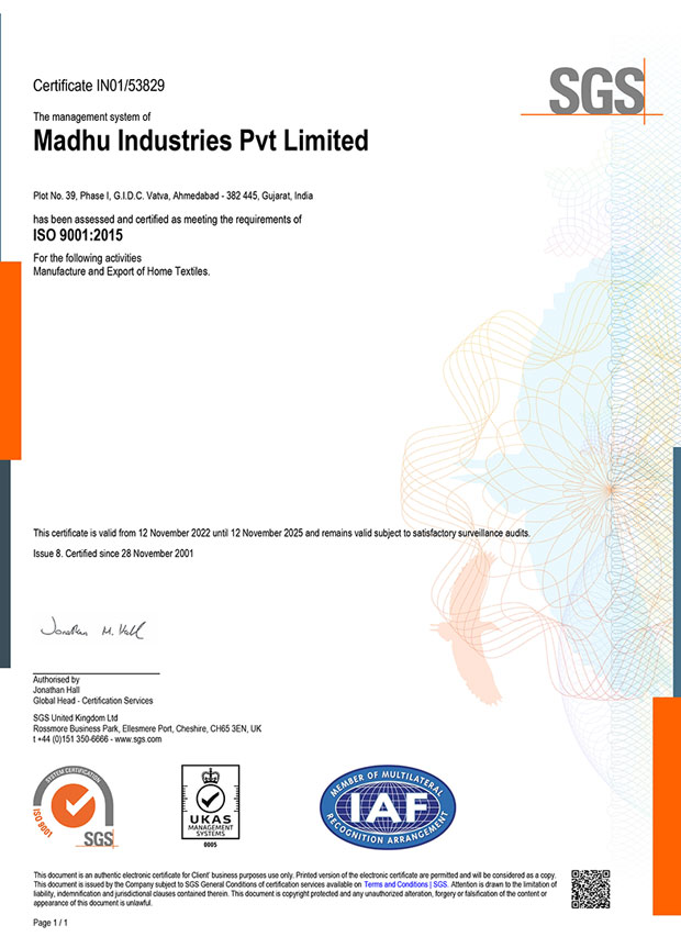 Madhu Industries strongly believes the reason for its long-standing success in due to the quality and consistency of its products. We have taken effective steps to ensure our clients of the same. Working in European Union (one of the most quality conscious in the world) has given us the required experience and expertise. We have taken the time and effort to successfully achievement some of the world-renowned Quality Assurance Certificates reassuring our product quality.